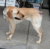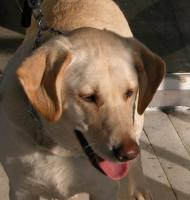 Sam (aka "Stubs") is a handsome yellow lab that was rescued from a local shelter. He had a serious tail injury and even though our vet did everything he could to save his tail, it just was not possible. Hence the name, stubs. Stubs loves human companionship and is happiest whenever he can be around people. He is an extremely intelligent dog but it would seem that he has little in the way of training. He is doing well with his house training and his "accidents" are becoming fewer as he progresses. Stubs loves to retrieve and will chase a ball with gusto as long as you are willing to throw it for him. Stubs would probably be best suited in a home with a family that have had large dogs before and are willing to provide him with reinforcement to make sure that his training is seen through. His foster family will continue to work with him as he goes forward in the adoption process and we are sure that he will become a perfect canine companion for some lucky family.