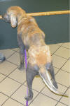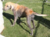**GREAT NEWS** Blake has been give a clean bill of health by our vet. His mange has been successfully treated and he is starting to get patches of peach fuzz all over his body. He has completed his heartworm treatment and his latest blood test shows him to be free or them. Blake was also neutered during the time that he was being treated for his numerous problems. Tender loving care and proper nutrition has helped him gain almost 40 pounds and get his muscle tone back to where he can now keep up with the other dogs at his foster home. Blake loves to run and play now that he is healthy again and he is an excellent retriever. He will retrieve any ball or throw toy for as long as you are willing to toss it for him. Blake is now looking forward to being placed in a loving "forever" home where he will know what it is to be a spoiled member of the family and live out his remaining days by giving all the love and devotion that he has within in his heart.